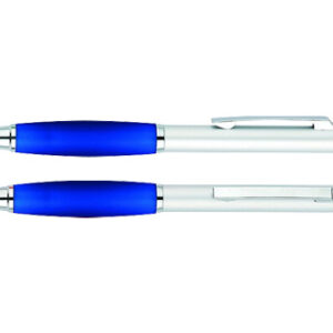 Plástico. Apertura retráctil con pulsador. Clip plástico, color plata en punta y cuerpo. Tinta negra.