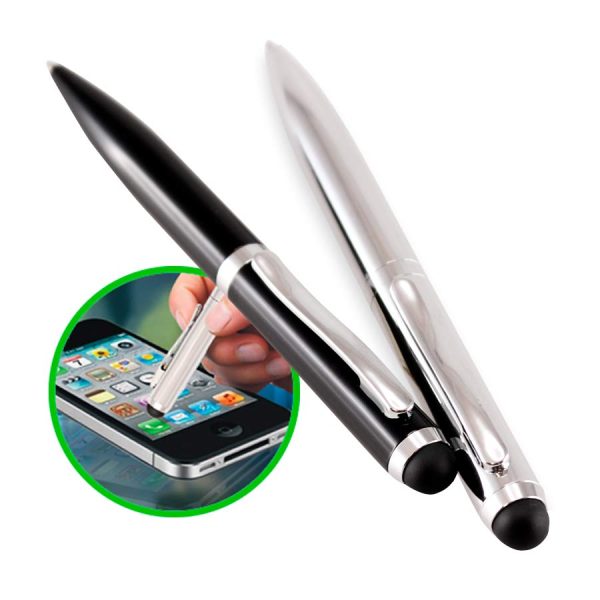 Bolígrafo Metálico modelo «Hotel», con goma posterior negra «Touch-Screen» para pantalla táctil. Escritura negra.