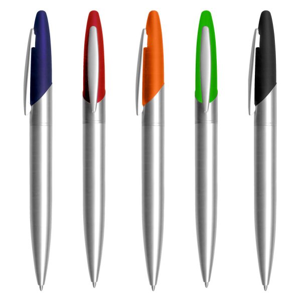 Bolígrafo Metálico modelo «Twister», con superficie superior engomada color. Escritura negra.