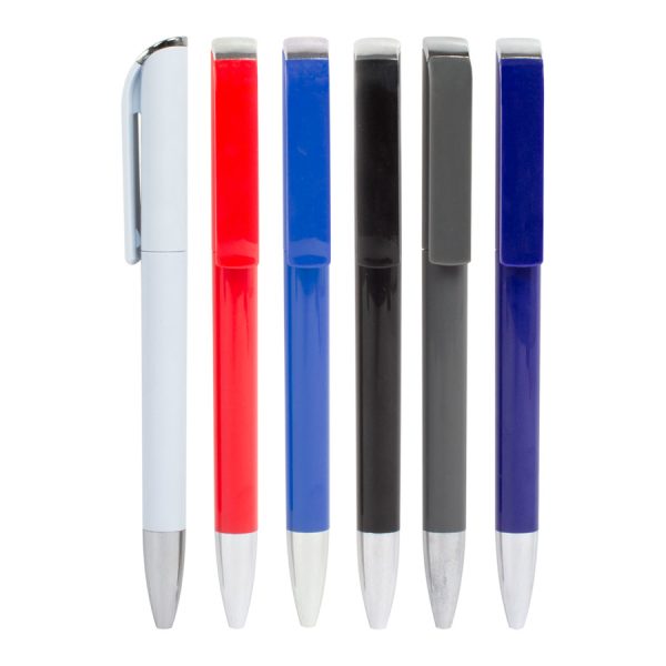Bolígrafo blanco «Angel», con clip ancho plano, especial para imprimir sobre él. Escritura azul.