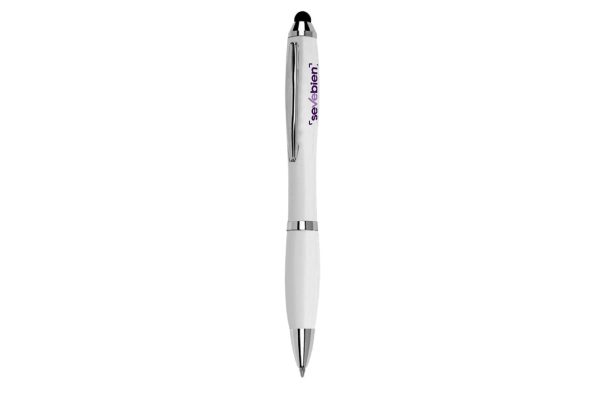 Ø 0,5 x 13,5 cm. Bolígrafo plástico giratorio con detalles metálicos. Clip metálico. Puntero para pantallas táctiles. Tinta azul.