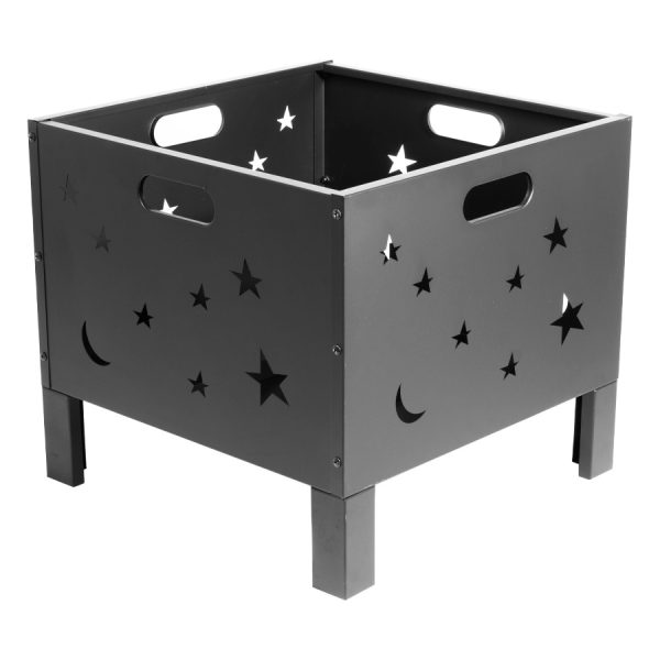 Brasero para Leña o Carbón, de Acero negro, modelo «Constelación». Bowl para fuego: 50 x 50 x 33cm x 10.6mm. Fácil de armar y transportar. Incluye Manual instructivo de armado en español.