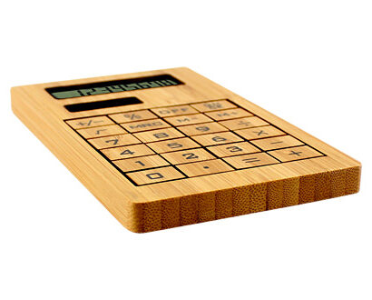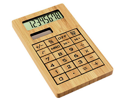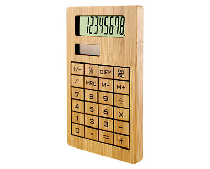 Calculadora 100% de madera de Bamboo. Visor solar 8 dígitos.