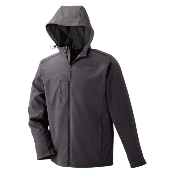 Chaqueta Softshell «IMAGEN» 100% poliéster de 320gr/m2 con gorro (capucha), para HOMBRE, manga larga. Contiene bolsillo interior para esconder reverso del bordado y cierres impermeables (principal y bolsillos). Presentación individual en bolsa de polipropileno transparente.