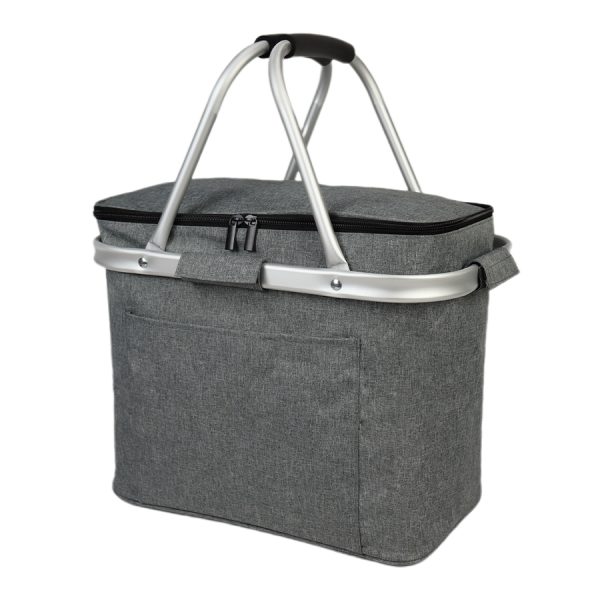 Bolso cooler grande de 23 litros de capacidad, en tela poliéster 300D/PVC. Montado sobre estructura de aluminio con asas plegables. Interior térmico aislante de PEVA y acolchado con esponja PE FOAM.