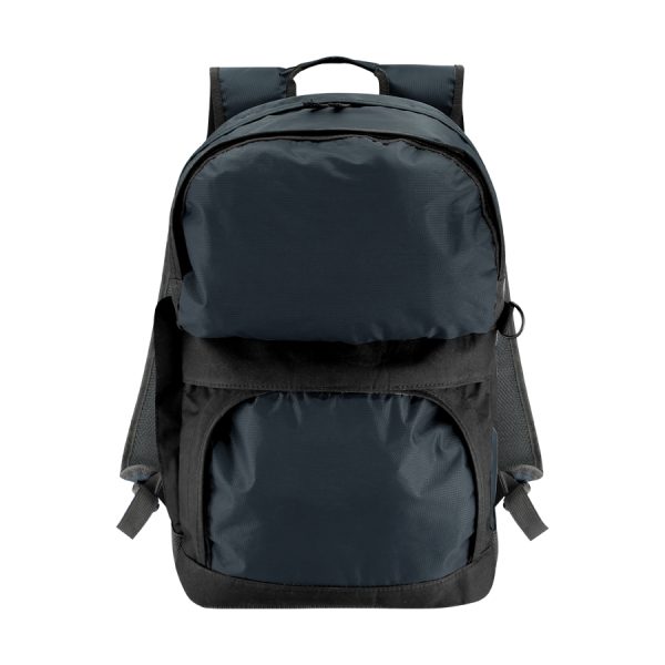 Deluxe Mochila modelo «XD» en tela impermeable polyester 840D, incluye 1 bolsillo frontal, 1 bolsillo lateral, 1 bolsillo porta-accesorios en uno de los tirantes y cordón elástico multiuso. Incluye capucha impermeable de polyester en la parte superior trasera.