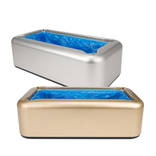 Dispensador de plástico ABS con estructura metálica, para Cubre-Calzado industrial. En cada pisada, entrega cobertor bolsa plástica de PE azul, ideal para mantener el calzado protegido de virus y bacterias en ambientes protegidos. Cada dispensador viene con 10 bolsas protectoras de calzado de PE (R18) de regalo, que se adhiere al calzado en forma automática en cada pisada dentro del dispensador.