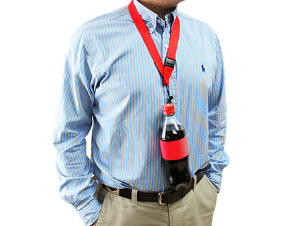 Lanyard de polyester liso de 2.5 cm de ancho para sublimación, con cordón porta-botella con pretina.