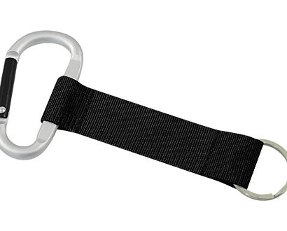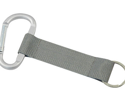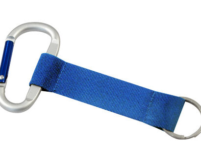 Llavero-Lanyard de polyester, con anillo porta-llaves y mosquetón metálicos grandes.