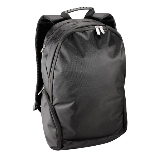 Mochila Porta-Notebook modelo «Blacktop», con bolsillo delantero y apartado interior acolchado para Notebook. Tela Polyester 840D.