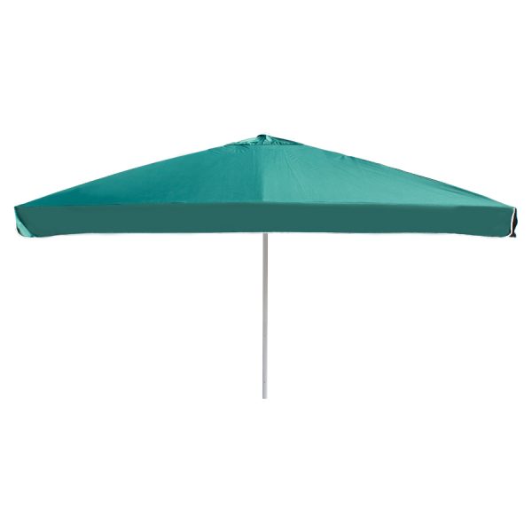 Quitasol gigante cuadrado de 4x4m, con 4 cascos de lona Poliéster UV impermeable de 180g. Contiene asta de Acero recubierto de 60mm de diámetro x 3.4m de altura, sistema de apertura manual. Para su instalación, se recomienda anclar el quitasol directamente a un hoyo en el concreto o pavimento, o bien utilizar la base P24, la que también se debe anclar con 4 pernos (incluídos en la base) al concreto o pavimento. Si el largo de estos 4 pernos no es suficiente, se recomienda comprar pernos adicionales más largos.