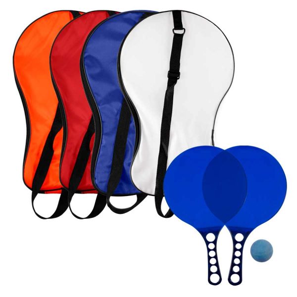 Set de Paletas de Playa de Acrílico de color Traslúcido, incluye estuche de PVC y pelotita de goma.