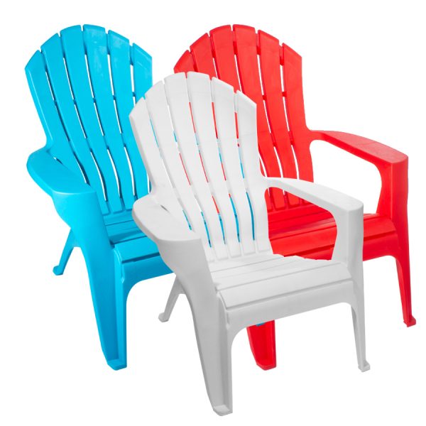 Silla Plástica modelo «Adirondack» de Polipropileno de una sola pieza, con topes anti-deslizantes en las 4 patas. Ideal para terrazas, jardines, playa o eventos. Puede usarse tanto en interiores como en exterior. Su respaldo sólido (sin líneas) y estrucura compacta la hacen muy resistente, resiste sobre 150kg. Es muy liviana, pesa sólo 4kgs. y como es apilable, es muy fácil de trasladar y guardar en cantidades grandes. Fácil de lavar. Producto importado de calidad superior.