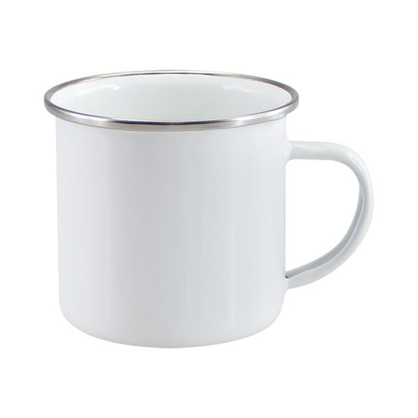 Tazón de acero enlozado «Enamel» de 350cc. con cobertura para Sublimación. Único con borde de Acero Inoxidable, que entrega higiene y protección al contacto con tu boca.