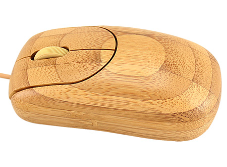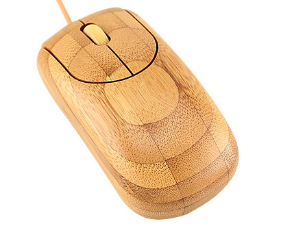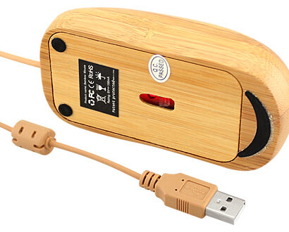 Mouse óptico 100% de madera de Bamboo. Incluye cable y conector USB.